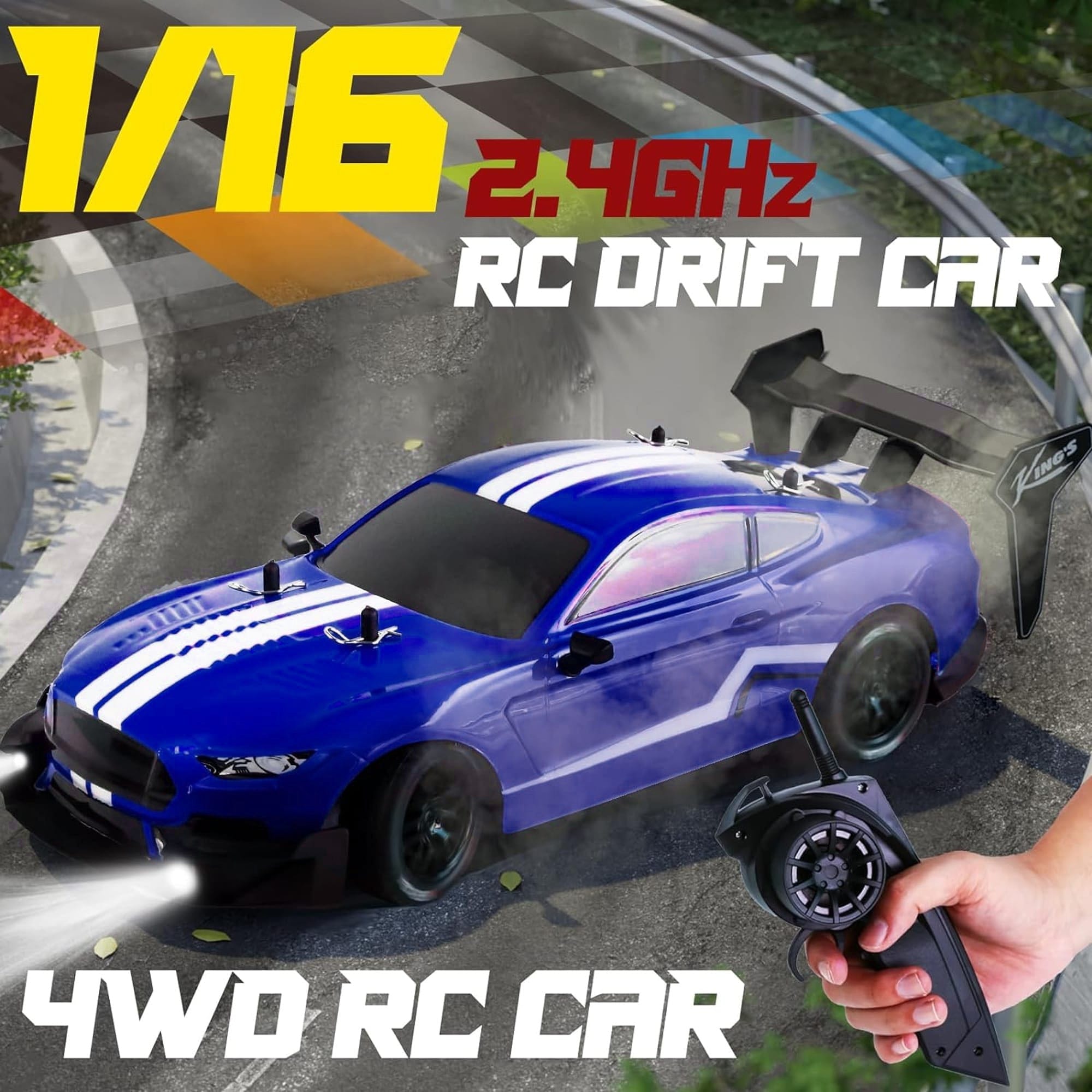 Masina RC 1:16 livreaza drift controlat la 30km/h, cu tractiune 4x4, roti interschimbabile si lumini LED pentru stil. Doua baterii incluse si telecomanda 2.4 GHz iti ofera sesiuni lungi si control stabil, fie pe asfalt, fie pe trasee mixte, in varianta Albastru inchis.