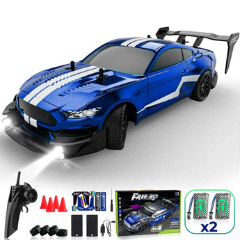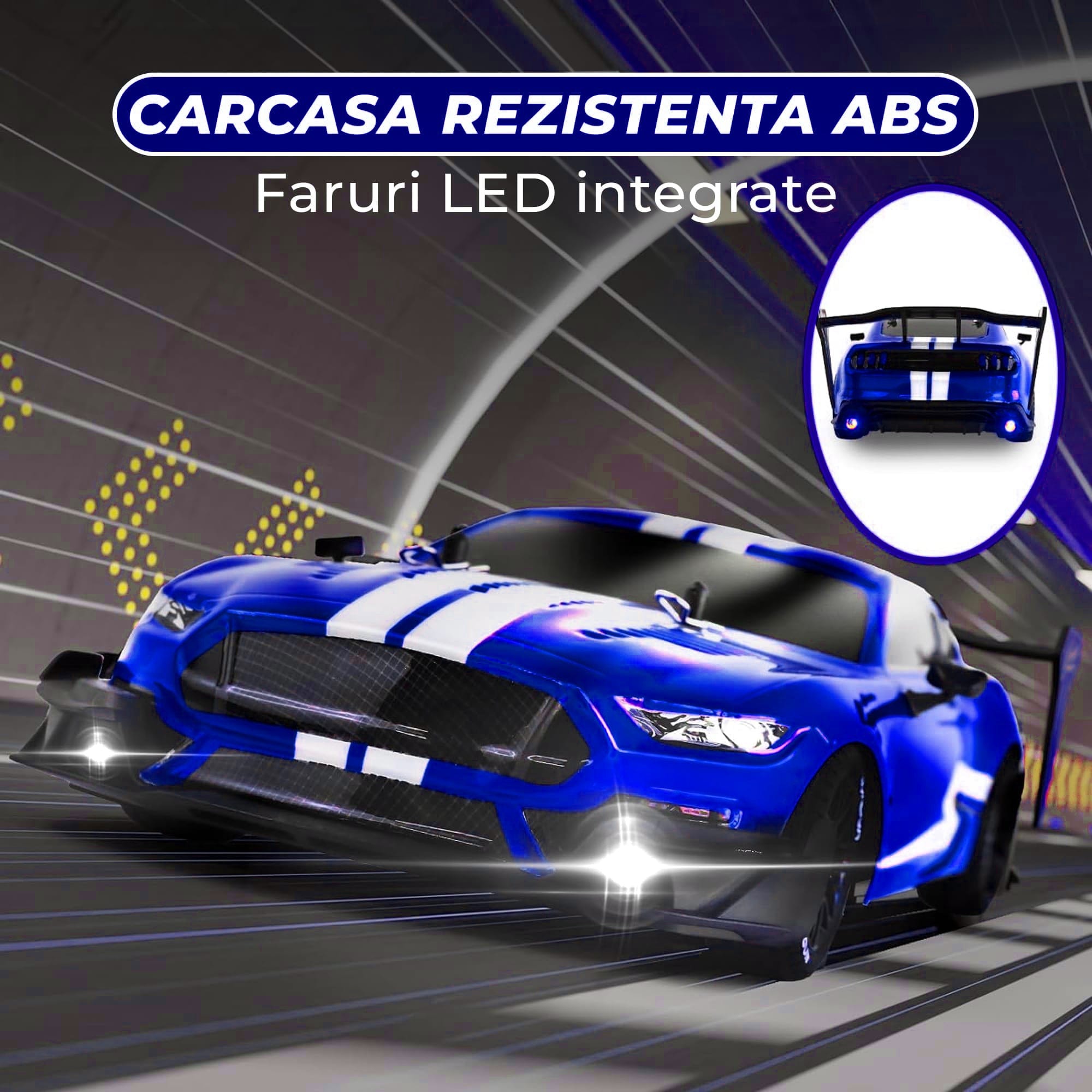 • masina cu telecomanda adaptata (drift car 4x4, 30km/h, LED, cauciucuri interschimbabile, 2 baterii).
