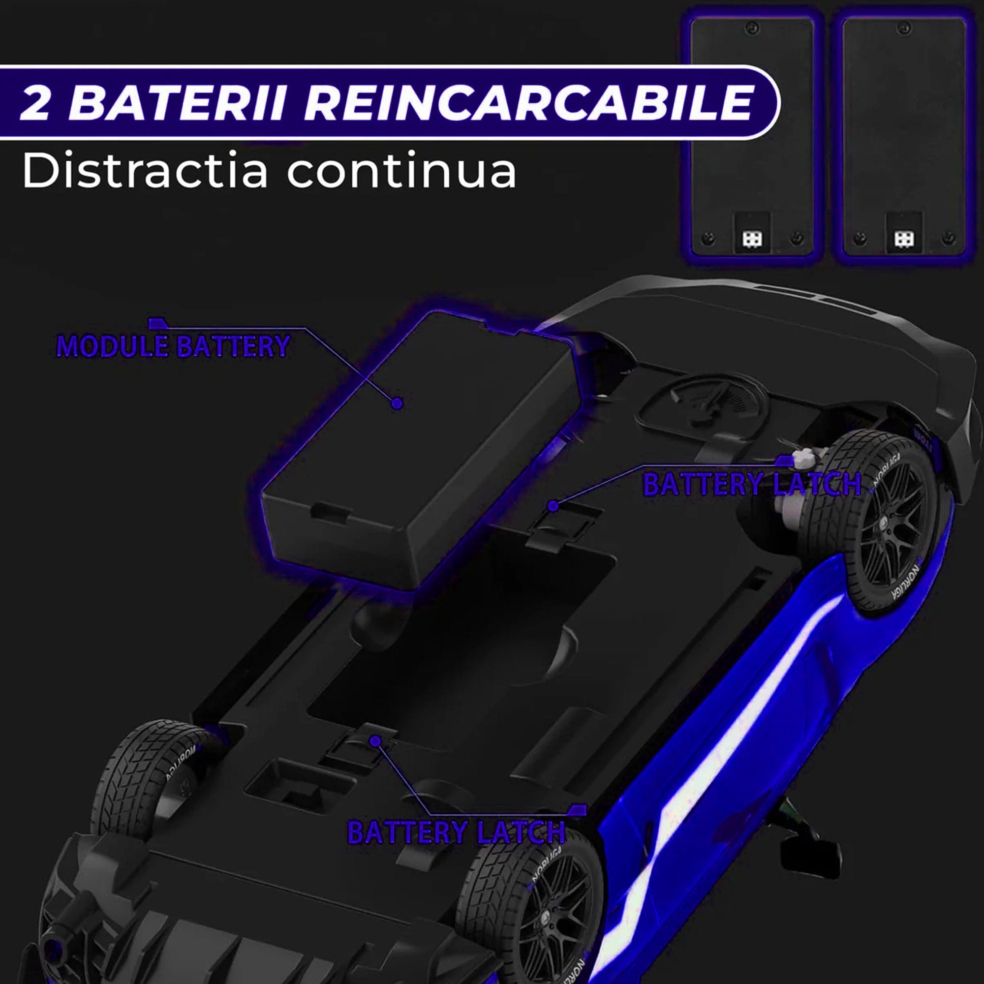 - Autonomie extinsa: doua baterii pentru joaca prelungita si schimb rapid intre acumulatori.