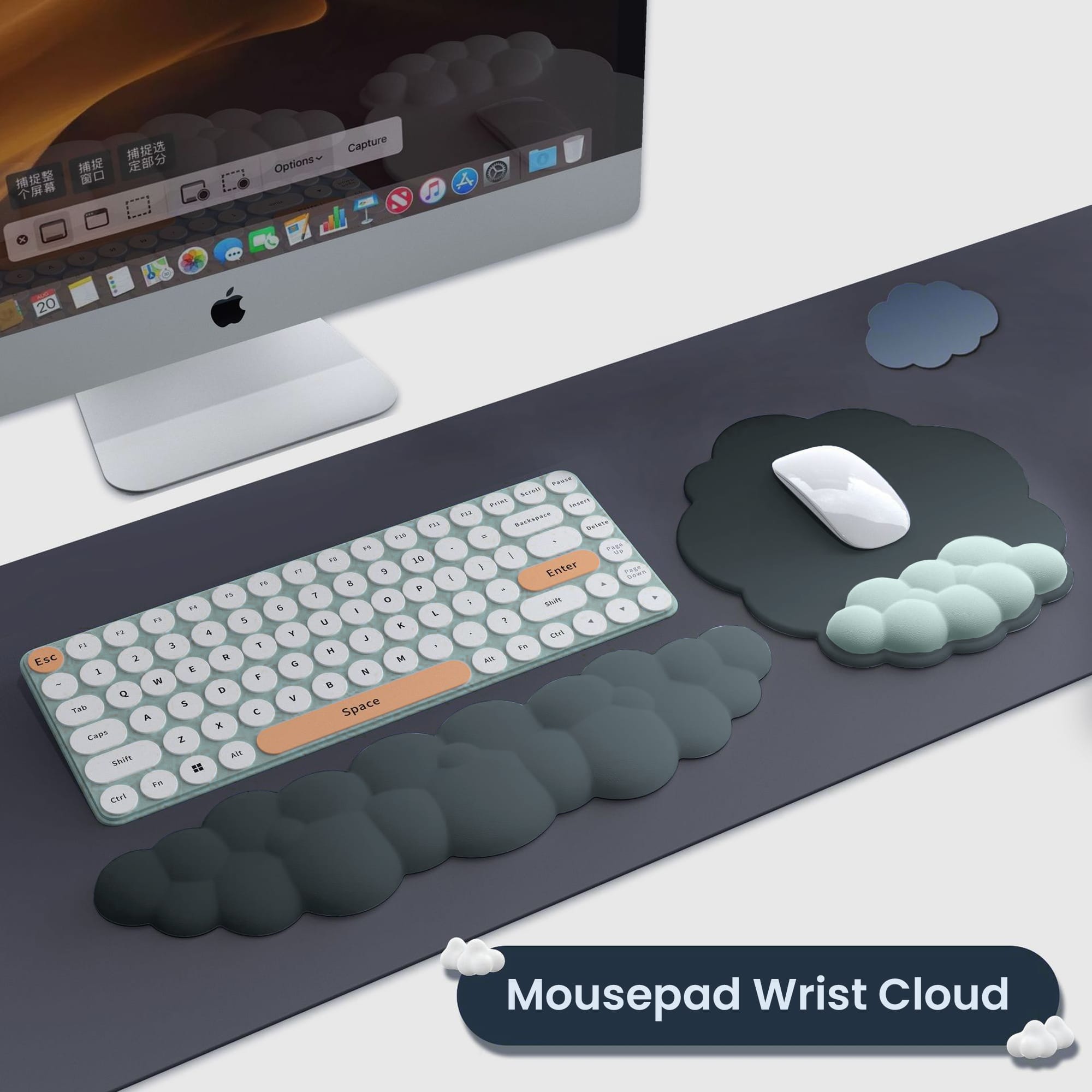 Mousepad ergonomic, spuma cu memorie pentru sustinere incheietura mana cu Wrist Rest, Baza anti-derapanta, Nor