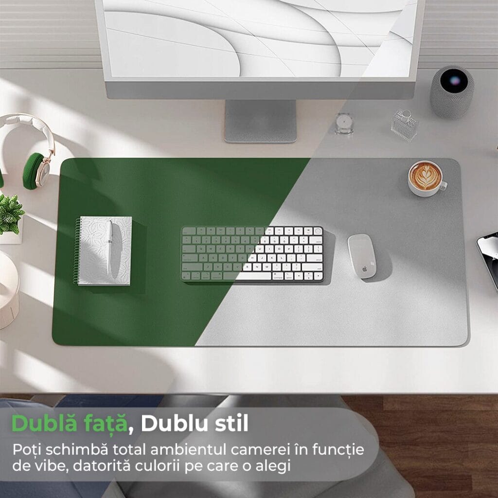 - Protectie pentru birou: Protejeaza biroul impotriva zgarieturilor, loviturilor si uzurii zilnice, prelungind durata de viata a mobilierului.