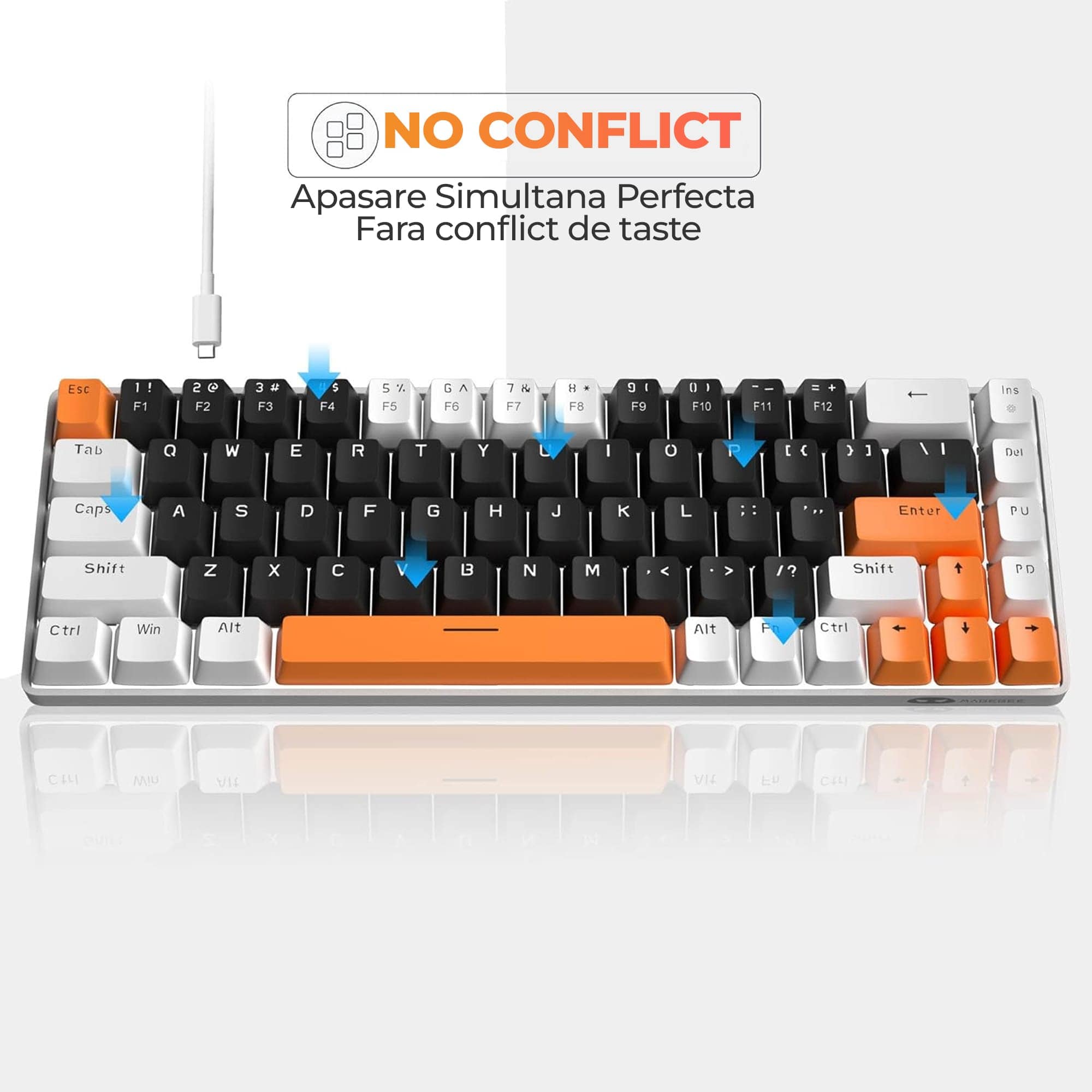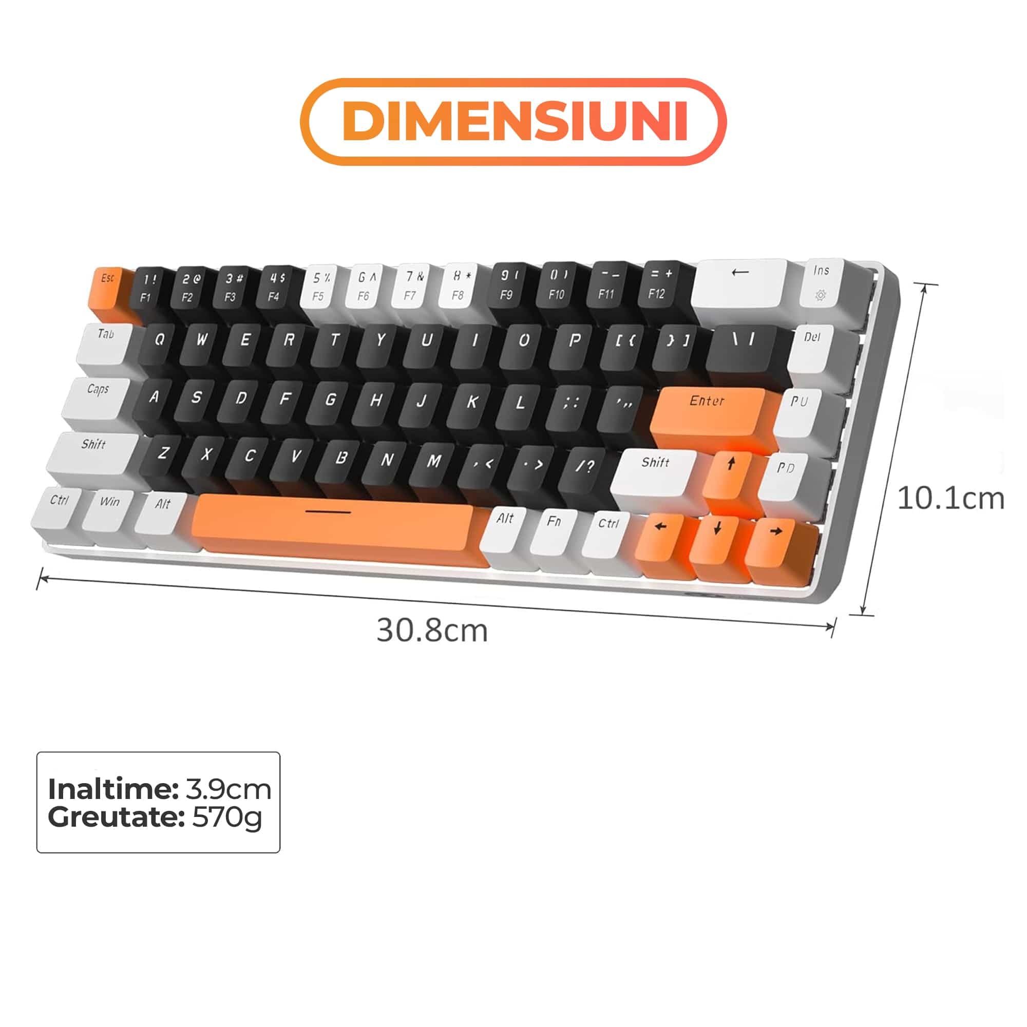 ⌨️ Tastatura Mecanica Gaming Timebox, 60%, lumini LED, 68 taste, cu cablu Type-C, Blue Switch, Portabila, Portocaliu ⌨️
